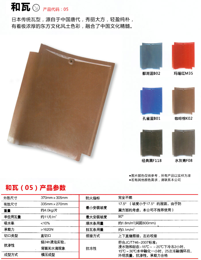 水泥磚,它是用粘土做成的,其特點(diǎn)很強(qiáng),但因?yàn)樗怯谜惩磷龀傻模虼似洵h(huán)境保護(hù)特點(diǎn)、顏色多元性比不上水泥磚豐富多彩,其價(jià)錢也比水泥磚高,并且陶瓦壓根沒有防潮特性,也不可以提升平屋面的防水層風(fēng)險(xiǎn)性。防水防雨、止漏,瓦塊鋪在房頂之后,應(yīng)將房頂嚴(yán)實(shí)遮蓋,降水應(yīng)與房頂充足分離出來。無論下多少的雨或多長時(shí)間的雨,雖然有風(fēng)大,也不允許降水滲透到房頂。不然,會(huì)毀壞房子的裝飾設(shè)計(jì)和設(shè)備,使其沒法定居,毀壞房子的總體構(gòu)造,乃至完畢其性命。因此,一旦泄露便會(huì)給人。它產(chǎn)生很多不便和無窮的不便。因而,防泄露是第一個(gè)關(guān)鍵的作用。瓷磚防水防雨止漏并不是一件非常容易的事。自文明行為問世至今,人們?cè)诮ǚ孔訒r(shí)就想方設(shè)法地防水防雨,雖然各種各樣原材料和瓷磚早已應(yīng)用了數(shù)千年,但這一難題一直沒有獲得非常好的處理。或是它能夠處理,但它是價(jià)格昂貴的,它不可以普及化。直至近幾十年,大家才開發(fā)設(shè)計(jì)出五顏六色水泥瓦,解決了房子的止漏難題。